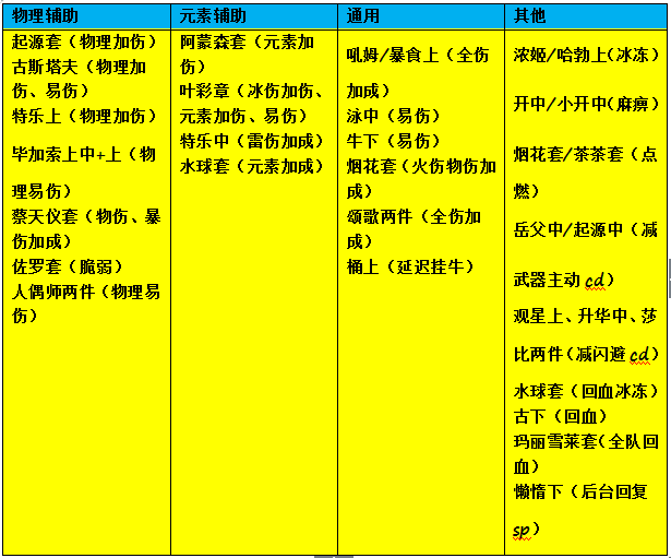 · 白练(山白白等白白阵容):提供时空、极限闪避全队回复sp、武器主动