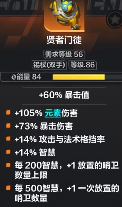 此双手杖需要堆智慧,加哨卫数量上限。所以其他部位装备除了血抗之外,最好带智慧。智慧会增加震波频率。