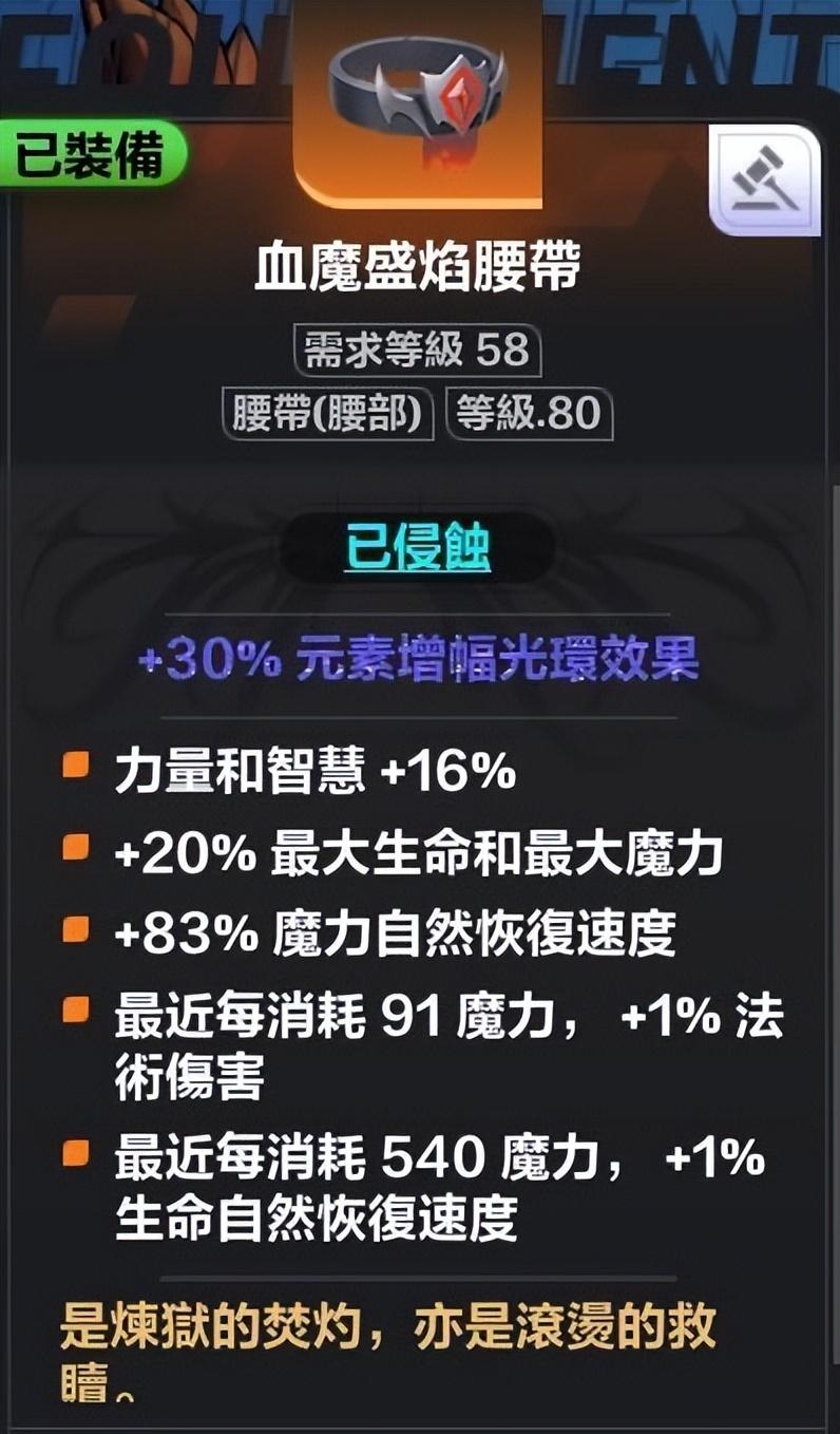 『耗魔流』简而言之就是一直消耗自身的魔力来增伤,而其中也是依靠着几件传奇装备的特有效果来支撑!造价非常高!因此在转流派之前请三思。