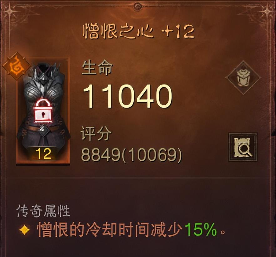 既然主要输出是憎恨,那装备的传奇特效必然要堆这个技能。因此衣服上的“憎恨之心”是脱不掉的,减少15%的憎恨技能冷却。