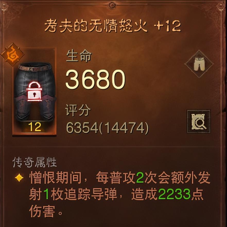 裤子则是“考夫的无情怒火”。进一步拉高憎恨伤害,单体输出一跃成为全职业第一。