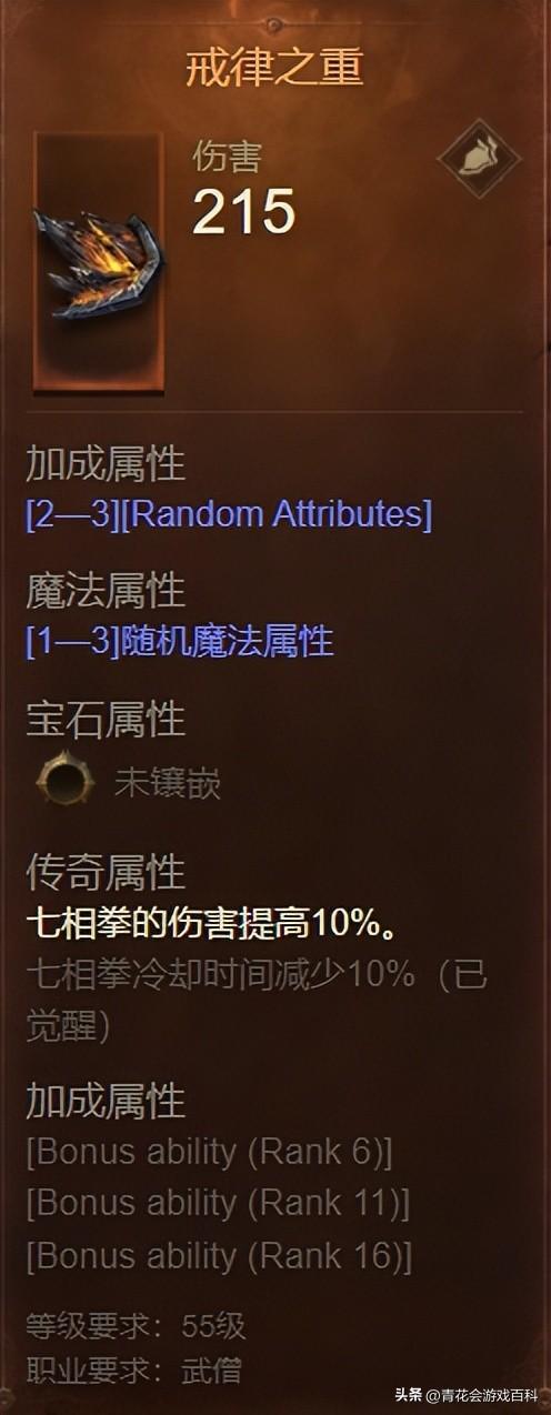 由于本套build是以七相拳为主要的输出技能之一,所以选择“戒律之重”来对其进行强化无可厚非。
