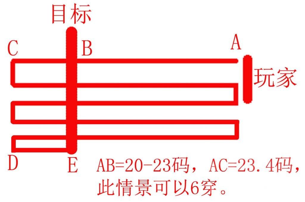 存在一个20-23码的最佳距离,刚好能达到单体6穿。