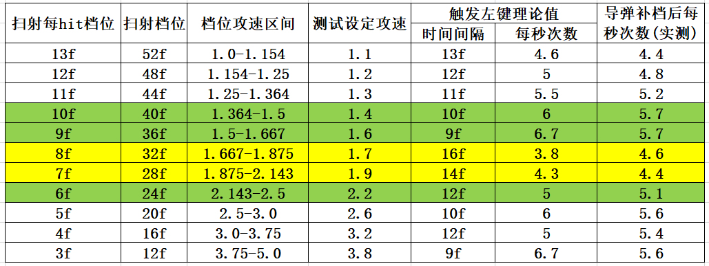 基于以上,实战时左键触发次数并不完全遵循理论“档位”,差距不像理论值那么大,配装时不必太纠结理论档位。