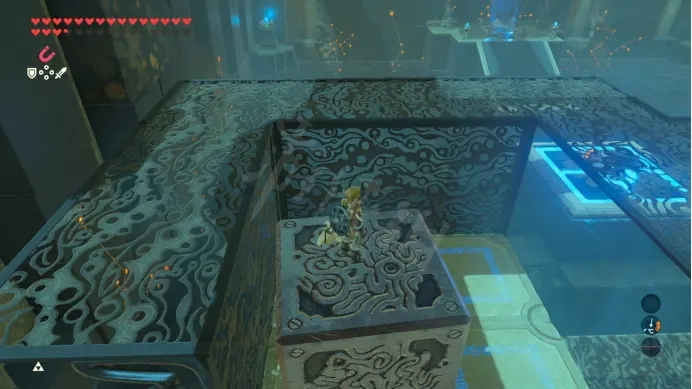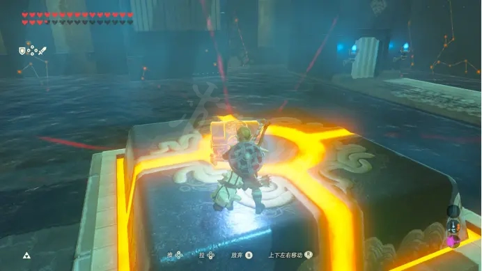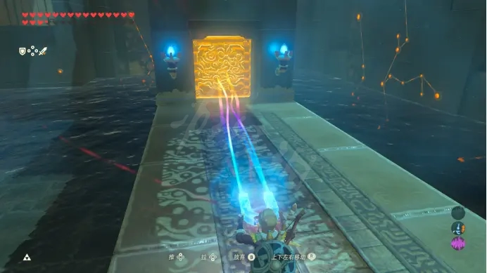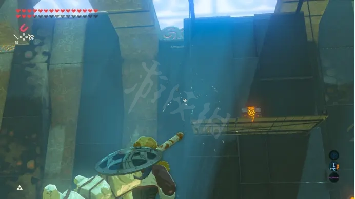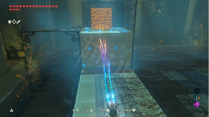 做完这些准备工作之后会发现左边的房间打开了,我们将房间里的铁块吸出来放到电梯上来垫脚。这样就可以到达神庙的第二层完成通关。