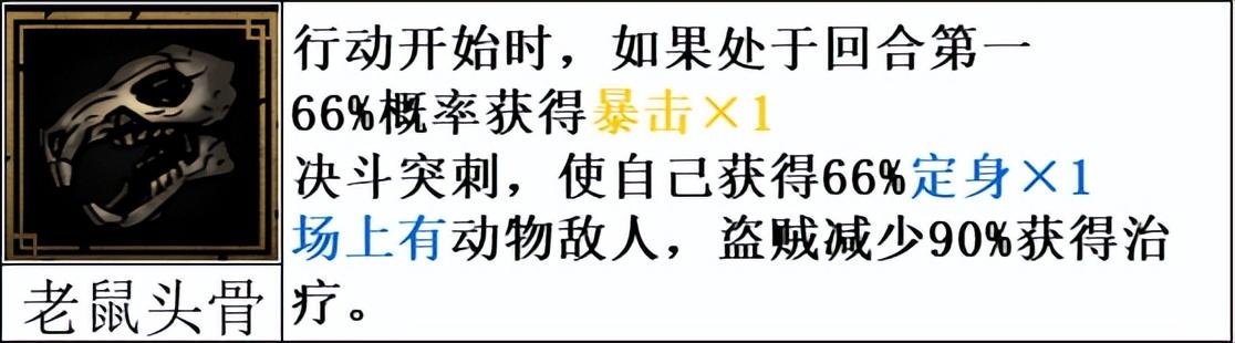 根据其对“速度”和“决斗突刺”的强化,老鼠头骨,比较适合迪斯马的“神枪手”与“流氓”道途