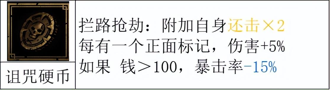 正面标记越多,伤害越高,该硬币适用于本身就强化了拦路抢劫的“劫匪”道途。