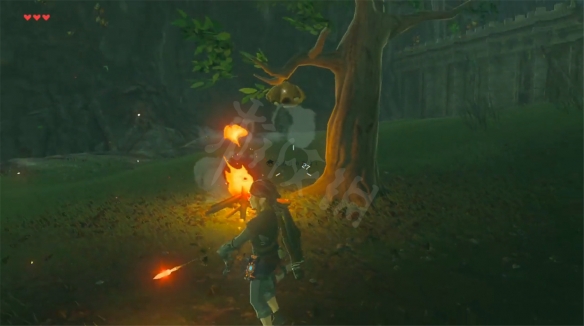 基本上,塞尔达传说的玩家都是用上述方法来采蜜的,而一位叫“Avalares42”的玩家则发现了新方法,他先拿出木头然后通过方向键将木头扔到蜂巢的下面,再使用火箭点燃木头,着火的木头会有浓烟冒出!神奇的事情发生了,浓烟居然可以把蜂巢中的蜜蜂给熏走,玩家就可以在安全且不杀生的情况下采蜜了!