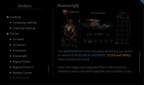 马车建造者(酒馆页左下左数第三个按钮)是唯一你可以安装和改造马车升级的敌方,选择马车升级并拖拽到格子中,鼠标移动到升级上可以查看其效果。