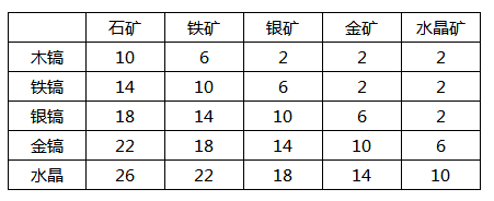 矿镐对矿石的伤害