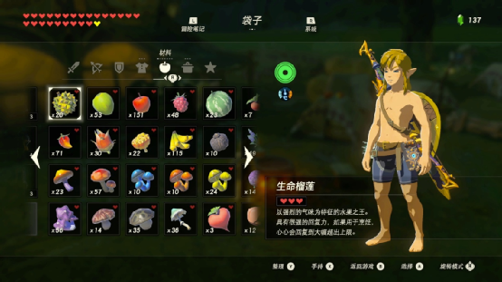 不论之前菜单在哪个页面,当林克靠近锅子时,按+打开菜单,都会自动跳转食材的页面,因为系统知道你准备做饭了......
