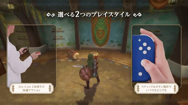 《御天之剑》最突出的特点在于,本作支持大量体感操作,不仅是像《旷野之息》一样进行体感瞄准,在《御天之剑》中挥剑、格挡、使用道具等操作统统可以通过体感实现。