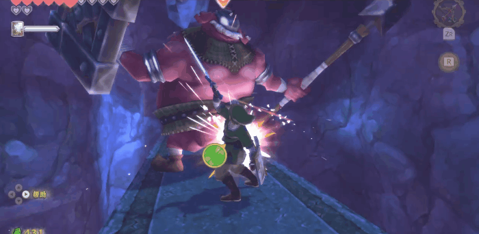 复刻自Wii的体感操作是本作最大的亮点之一。Switch的右Joycon在游戏中化为了可以八方向劈砍或纵向刺击的利剑,玩家只要向不同的方向挥动手柄,就可以让林克打出不同轨迹的斩击。这些剑招被识别得非常准确,而使用时也无须一板一眼。玩家在破防小怪之后,完全可以继续挥动手臂衔接一套流畅的连招,将敌人搅成灰烬,并感受到画面与音效上的优秀反馈。如此爽快的体验也让我在游玩时总是站立起来,摆出与林克如出一辙的接敌姿态,并夸张地挥动整条手臂来进行战斗,不自主就获得了十分强烈的代入感。