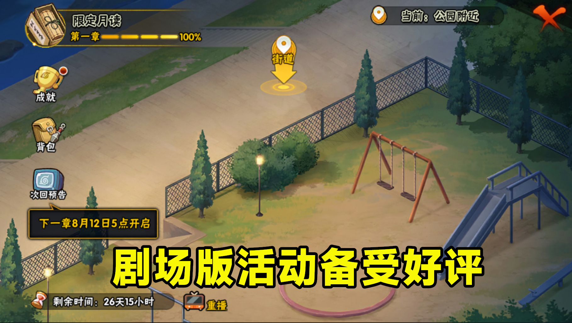但实际上这次的剧场版活动还需要通过多方面来综合分析,比如产出的奖励和活动的体验等等。对于一些没有看过忍者之路剧场版的玩家,通过开场的动画还有第一章的流程体验,应该也会很快被带入到剧情中。在这个月读世界中,看到了性格反差较大的各种角色,还实现了鸣人可以跟父母一起生活的愿望。虽然很多过场都只是一些图片形式串联起来的,但真正能让玩家或者是火影忍者粉丝感受到的应该是剧情带来的感动。并且通过剧场版活动还可以看到一些非常还原的木叶村场景,也是能够感受到策划确实有在用心。
