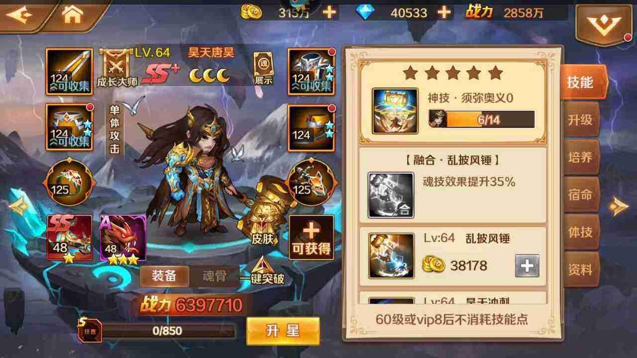 总结:本游戏是养成类卡牌游戏,然而又带有绝对操控,游戏属性有攻击、性命、防御、攻击速度、暴击等,可以在装备、体技等方面获得的关键是攻击、性命、防御等。提议先行聚积输出,动摇输出的关键是攻击、暴击、攻击速度。