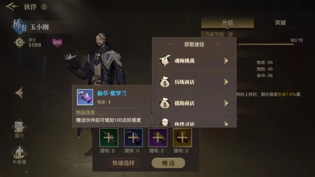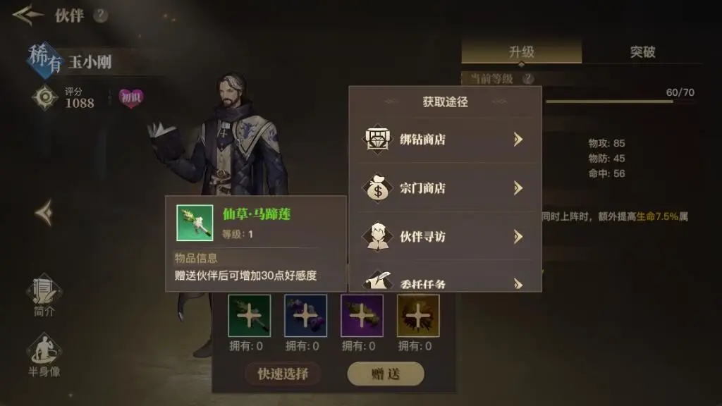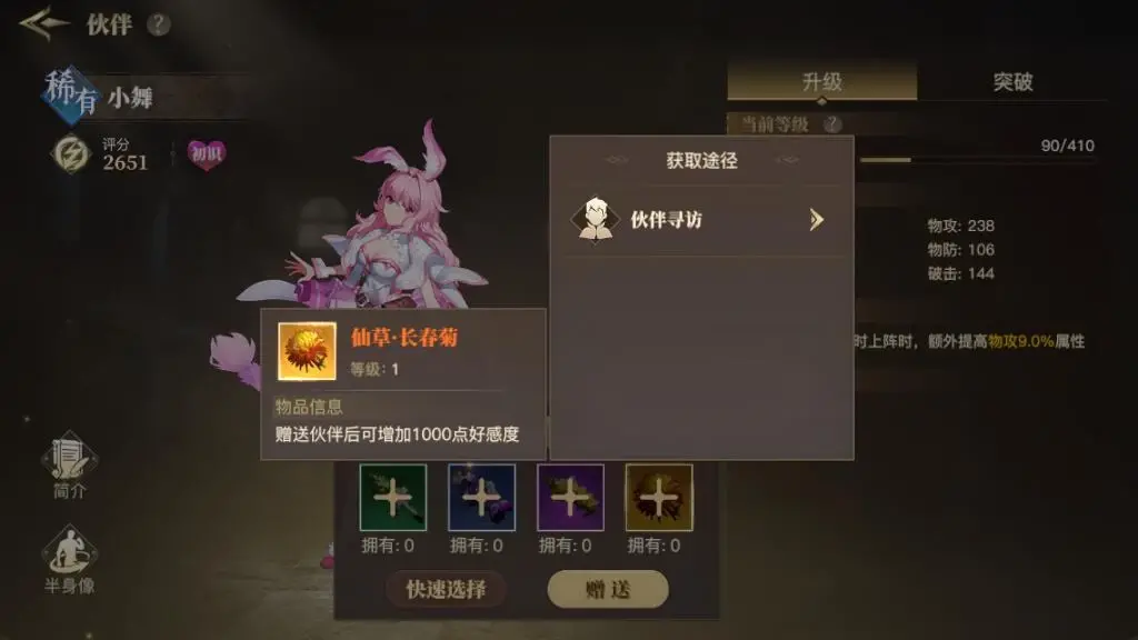 首先,与伙伴的亲密度在默认的状态下是0,玩家们需要通过后期的培养才可以提高。最有效的方式就是赠送伙伴各类鲜花,这样就可以快速提升与伙伴的亲密。亲密度越高的情况下,伙伴为玩家们提供额外的属性越强。