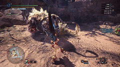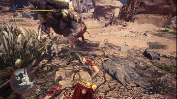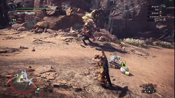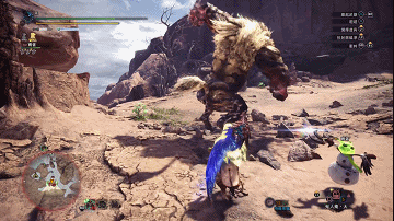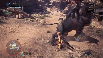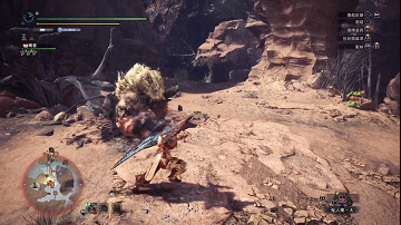 【上身反手投技】在没有转身衣的支持下,随意上身是非常危险的,有可能中反手投技,会被金狮从肩上摔下来,然后必定中一个投技,这个投技倒是没啥伤害,不过投技之后必定进入仰躺硬直,此时金狮会进行追击,需要即使回避,或用爆裂结晶或闪光弹中断动作,如果看到同伴中了投技,请及时辅助中断,否则很有可能被秒杀。