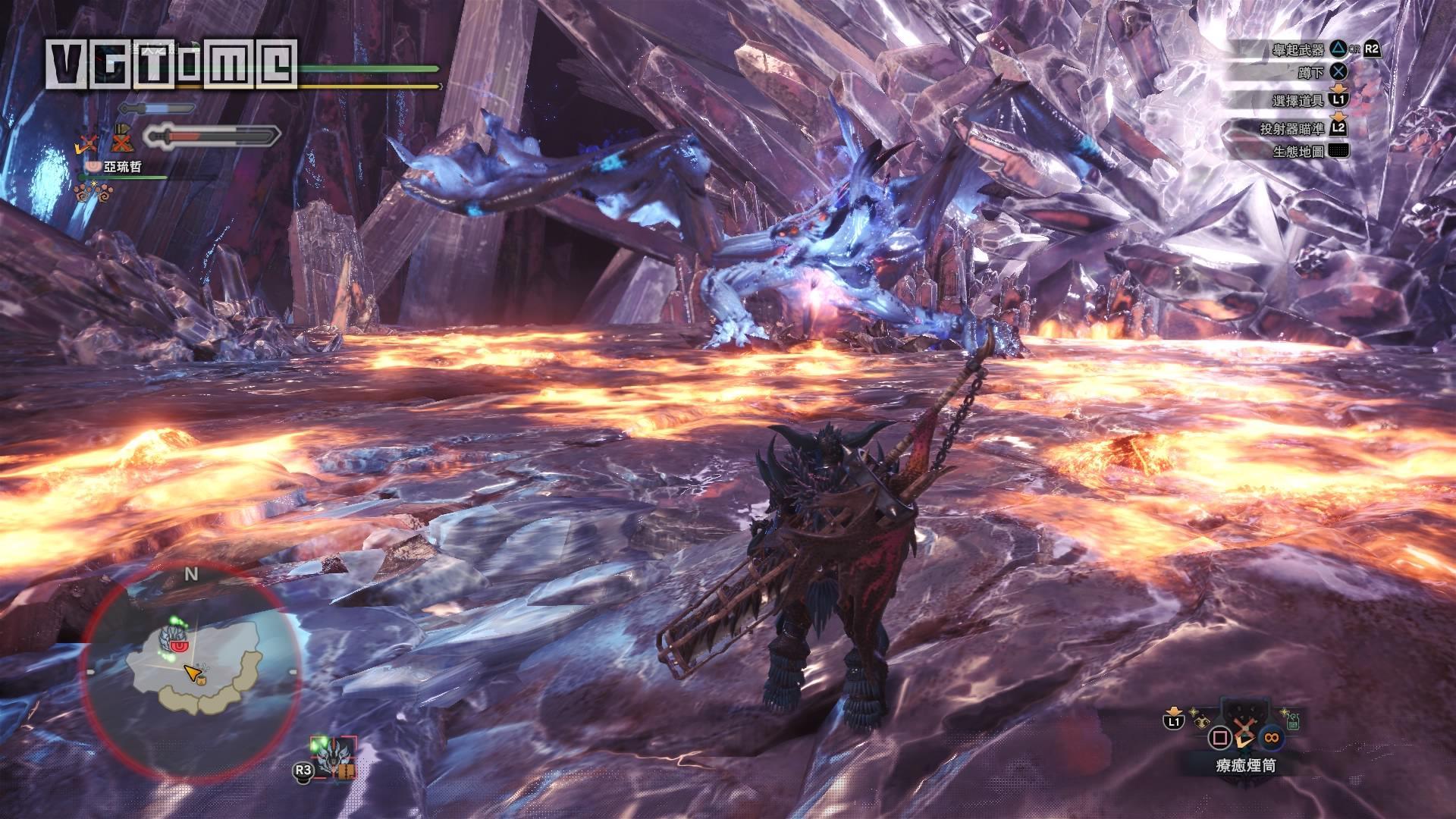 这个阶段时间较短,猎人们要在区域1与冥灯龙周旋,造成一定伤害后就会转移至区域2。此阶段冥灯龙以普通状态为主,只需要躲躲龙车即可。值得一提的是此区域内有四个可以打落的结晶体,每个都能对其造成800多点的伤害,妥善利用即可迅速进入第二阶段。