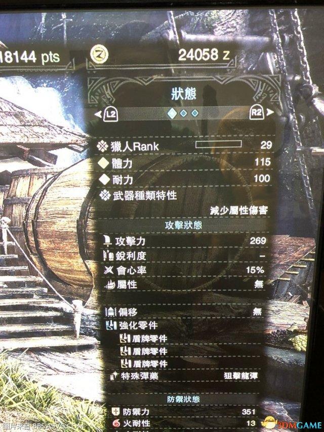 武器:重弩,走飞雷龙套,斩裂弹可以上4发的那把。