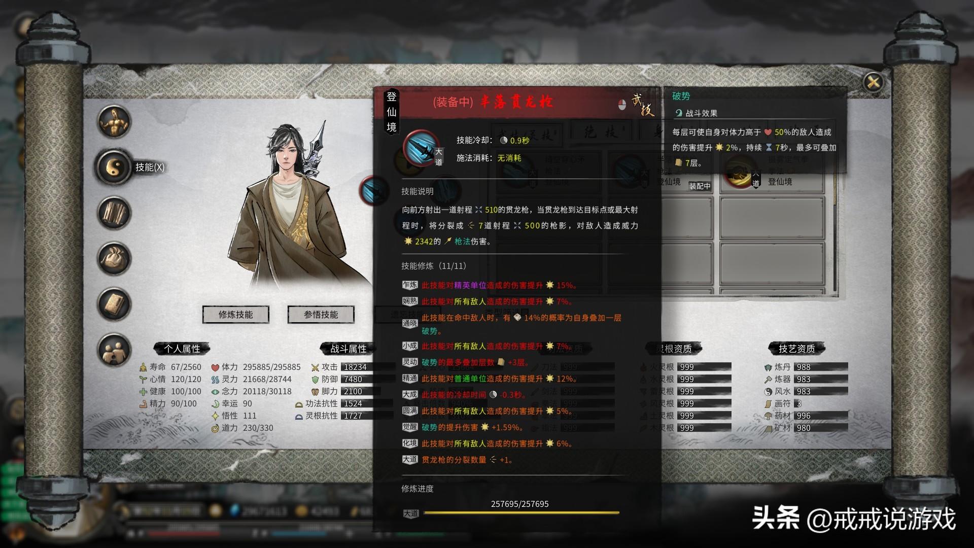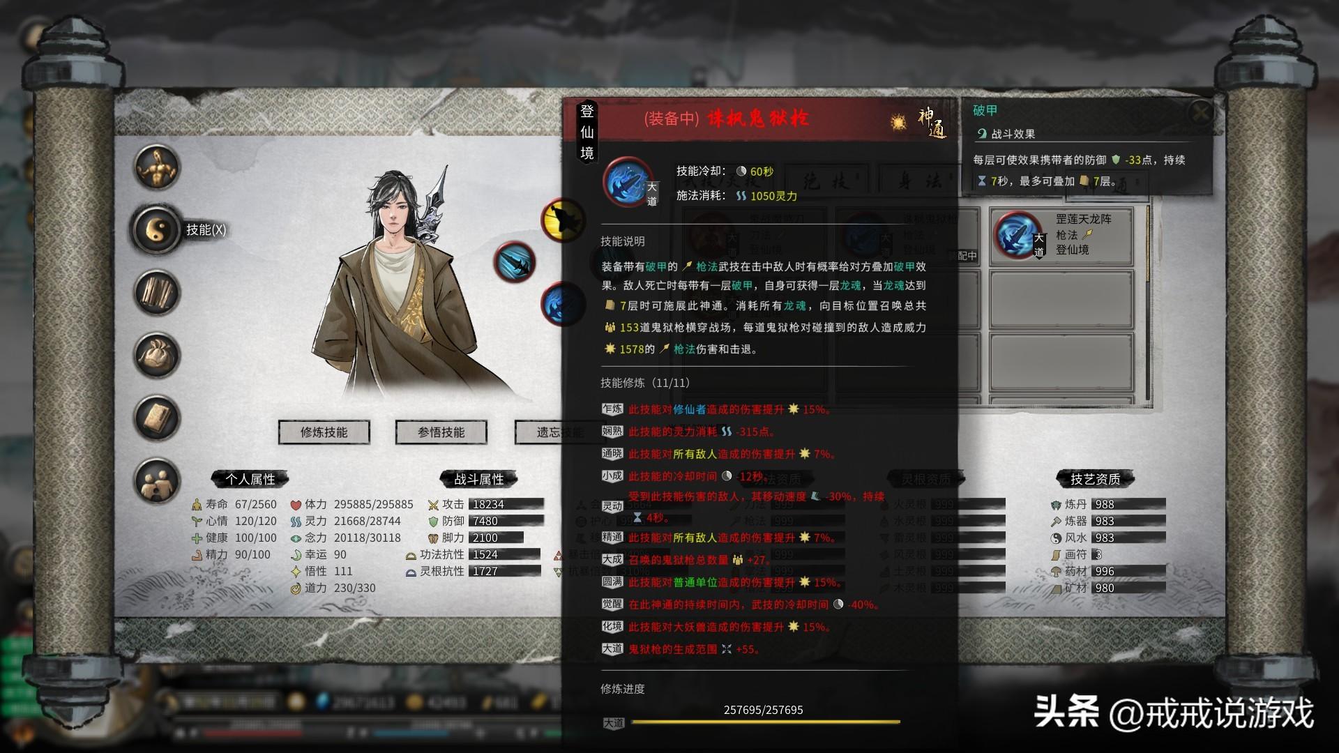 枯燃、继明和万象可以让武灵技射程+20%,这里面继明的逆天改命天雷滚滚很炫酷,在有多个修仙者队友时有概率触发,启动后下起暴雨持续40秒,所有敌人的移动速度-20。暴雨持续时,每1秒在体力最多的友方单位处降下落雷,对该队友造成威力16的伤害,对距离500范围内的敌人造成160威力的伤害。技能冷却时间120秒。
