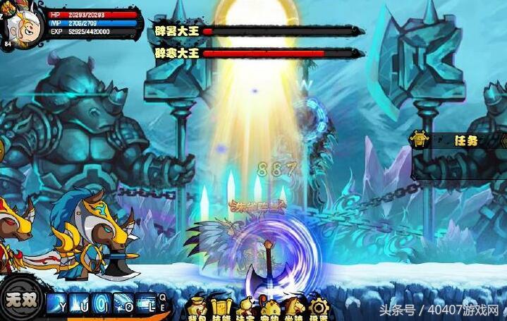 这两个boss的合作能力很强,两个你一起打你会被虐惨的,但两个技能放完一起打就很简单了,两个都没得还手。刚开始出来的是辟暑,趁辟寒没出来赶紧剑系龙吟四海游·上1把剑+破空斩+翔龙斩+破空斩循环(循环时不需要龙吟四海)连击至隐形,15秒后辟暑大概剩60%的血要放烈日了,赶紧跑+翔龙斩在空中被打一下就躲开,辟寒有可能用冲刺或飞斧,都是远程的,要速度跑开,离烈日比较远了别停下,不然会被辟寒连击给辟暑过来争取时间。