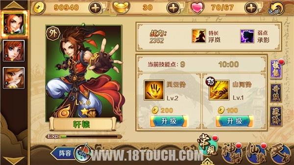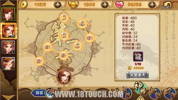 游戏养成较为多样,从人物到装备的选项遵循卡牌RPG常见模式,所幸除去进阶外需要多一些材料道具,其余功能基本都是砸钱即可,简单粗暴的方式免去了不少繁琐的套路。游戏内新手福利非常优厚,紧跟每日活动便能赚取不少,一天之内百万铜钱、上千元宝都不在话下,足以让你安然度过前期。