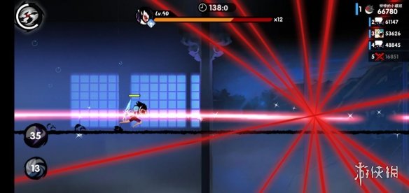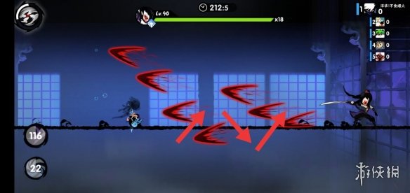 如果不会直接躲在绳子下面就行了,熟练了之后可以去捡绳子上方的飞镖,这时候血影是不会躲镖的
