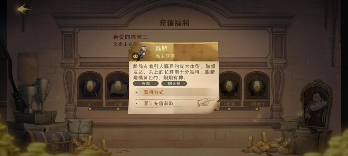 当充值满3888元时,就可以获得一只超酷的雕鸮,想在内测中独树一帜,成为其他玩家仰慕的存在的话,各位氪金大佬就快入手吧!