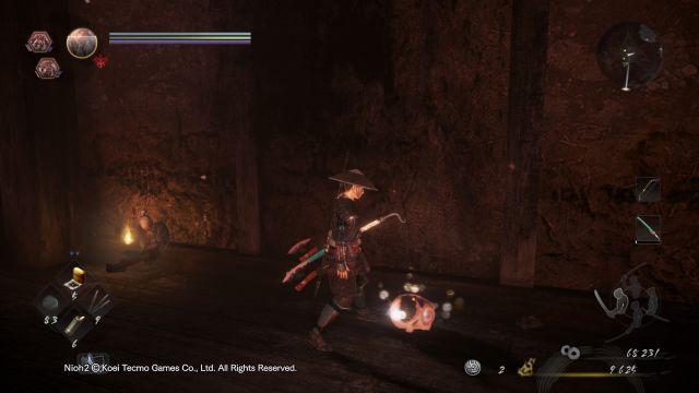 仁王2是一个以“action-reaction”的砍杀为核心玩法的游戏,在游戏过程中玩家需要面对各式各样的人形敌人和妖怪,通过忍术和阴阳术来为战斗创造优势、通过躲避&招架&妖反来获取攻击机会,以架势变换&武技&妖怪技在敌人露出破绽的间隙打出最大化输出,最终以多种方式实现对敌人的斩杀。游戏的基本操作为:左摇杆移动,闪避&轻攻击&重攻击&互动,R1与基本功能键配合为切换四种架势,R2则可以联动发动守护灵凭附的两个妖怪技和妖反(都会消耗妖力),在头像旁边的圈续满以后则可以发动妖怪变身(根据初始选择有三种类型,妖怪类型也决定了你的妖反类型),妖怪变身后输出大幅提升,在原本血条&精力条&妖力条的区域会出现一个红色计时条,在妖怪化的过程中处于霸体状态(但是会吃各类投技),但发动攻击、遭受攻击、进行闪避这些动作都会消耗这个计时条,与妖怪化相关的属性可以在技能盘“妖”中进行强化。如同黑魂、血源诅咒、只狼一样,在初见各式敌人时,玩家会需要很多次死亡来学习怪的攻击模式:怎样的招式应该如何应对、什么时候是输出的时机。在大致熟悉了怪的行为模式以后,剩下的就是反应速度、行动精确性影响的战斗中的容错性高低了,通过反复训练的肌肉记忆,可以达到我变强了 也变秃了 的学习快感在仁王中,由于各类动作都需要消耗精力,而当精力见底时无论人还是怪物都会有一个停滞喘气的时间,所以对自身精力的控制和对怪物精力的削减成为了战斗环节的核心:这也是从上一代就继承过来的残心和架势系统,在攻击或闪避等消耗精力的动作后立刻发动残心可以恢复上一次动作消耗的精力,以确保打出更多的输出,或者在打出一定输出后还有体力全身而退,尤其在精准的用残心消除常世可以大幅回精力起到扭转战局的效果而不同的架势会带来不同的精力消耗与战斗效果:举刀(上)可以打出更高的DPH,可以完成断角等削弱妖怪的动作,但体力消耗巨大。持刀(右)攻防均衡,可以视局势攻守转换。持刀(左)可以释放居合、十字斩等高伤爆发技能,配合削精击倒等机制完成不错的combo效果,拖刀(下)则有着最小的精力消耗,可以实现最高的攻击频率(用于打断精力耗尽的敌人或者配合符快速削精)。精力系统是如此重要,导致在战斗中削弱敌人的精力也成为了性价比最高的作战方式:在各个武器的招式系统中,都有大量的增加敌人精力消耗的技能。而在怪物发动红光妖怪技能后的恰当时间点发动妖反,则可以直接打断妖怪的动作并且降低其精力上限,打空其精力,在精力打空后任何攻击都会中断妖怪的动作,同时妖怪技可以继续削减妖怪的精力上限,在精力上限打空后会触发妖怪倒地,可以执行处决(人形敌人只需要打空精力或者推倒就可以执行处决)在学会了战斗中的精力控制以后玩家接下来需要掌握的是利用忍术、阴阳术和妖怪技能来为战斗创造优势:无论是先手的伤害或者削精,还是对应弱点的属性伤害等等都能为战斗提供可观的先手优势,忍术阴阳术的道具、魂核凭附的技能都可以在木灵供奉的神龛中进行替换