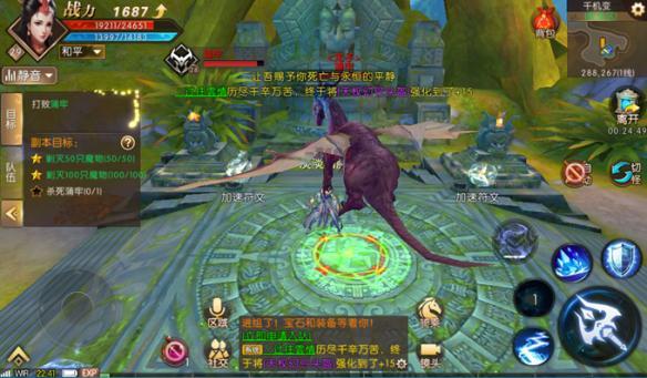 千机变副本是不可以用药水回复的,三星通关之前也不可以使用自动刷怪功能,只能纯手动。副本通关的目标就是击败终极BOSS【蒲牢】,一旦角色死亡只能复活重新挑战,而BOSS也会刷新血量。大BOSS出现之前,会有24波魔物出现在平台的各个地方,他们很快就会消失,击败他们可以获得银币,消灭50只可达到一颗星目标,消灭100只可再达成一颗星目标。24波魔物全部刷新完之后,玩家要再击败蒲牢,就可以三星完美通关了。