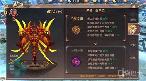 弑神必杀技:这个技能伤害爆炸,可以直接秒杀同等级小怪。而且持续回血回蓝,药师的话,可以在四技能打出去之后,血量依旧持续下降时,释放此技能,来保证生存,等待华灵咒CD。