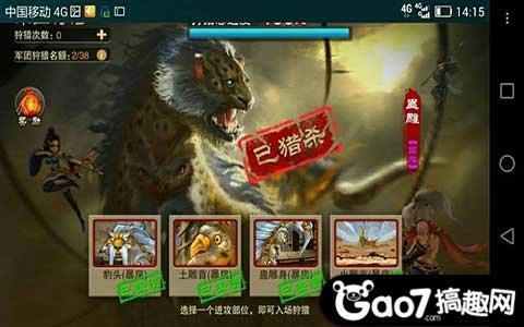第三图炸蛊雕身,我们找到团里打最好成绩的“欲血魔神”(他用的是剑豪),他总能在第三图不开鼓舞情况下(第三图开鼓舞和不开鼓舞一样,只加血,没有用)打出3.几的高分,我们全体普遍是1.几,然后我们就找出团里跟他战力差不多或者比他低的人的号给他打,打法:剑豪技能释放快,输出高,一个炸药桶只需要一个技能外加一俩次普通攻击,就能击破,特点就是控制好距离,多加练习就能做到,狩猎当天我准备了十个剑豪号给魔神,让他代打,凌晨十二点开打,一直打到二点,中间出了点差错,没有过,白天加了一个人才过的。不用鼓舞,只需买一次次数,50元宝,战力要求39万以上,攻击4.9万以上。
