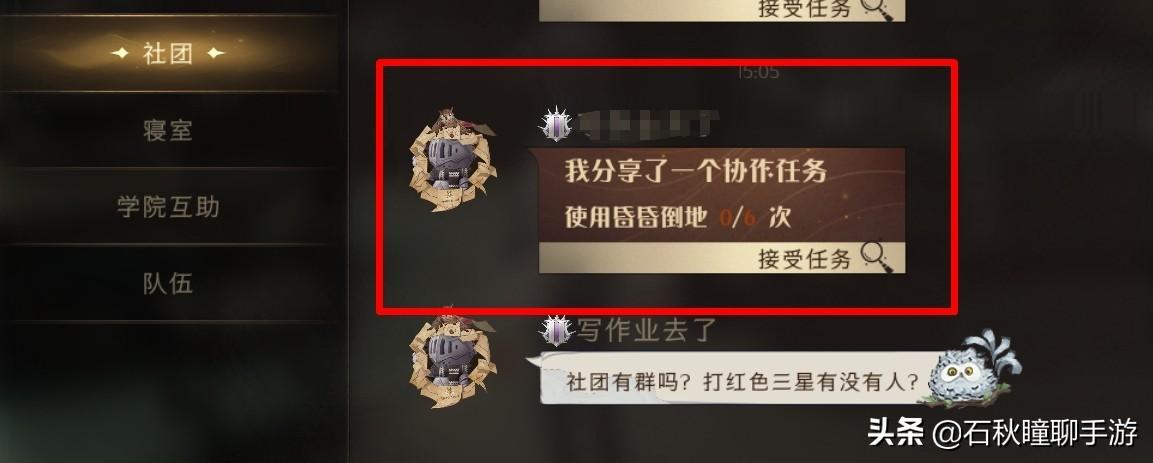 这里需要注意的是,每日可以完成最多三次的协作任务,你需要在社团或是学院互助中领取别人发布的协作任务。完成之后,需要你分享出去,让下一个玩家继续完成,之后就可以获得奖励。