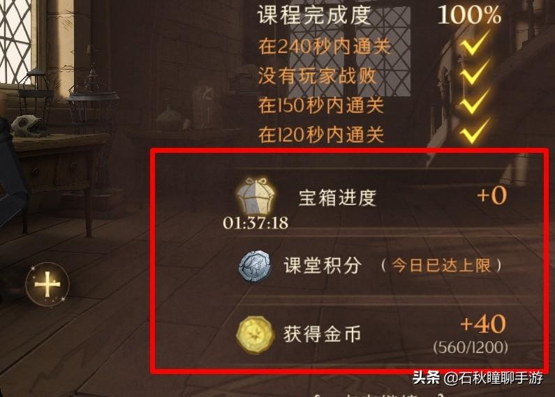 个人建议,每日把禁林门票和课堂积分刷满就不用再去上课,宝箱进度和金币获取可以用其他方式来得到。