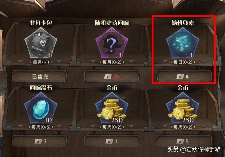 用获取的感谢信,你可以在对角巷的神秘商店处,换取随机的蓝色线索,每日上限两张。