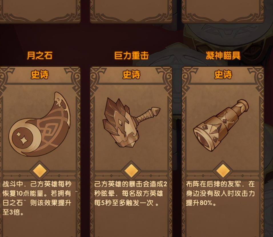 遗物的选择中,一般来说队伍中没有奶的情况下或者是女妖主C的情况下,优先选择能吸血的遗物,有奶的话可以选择增加防御力或者减伤,然后是能量回复,不过想要高输出的话,全选攻击类的遗物也可以,但是还是要看整体队伍的搭配,徒有输出,没奶没控制也是不行的。遗物的选择要根据阵容和队伍中的短板为主。