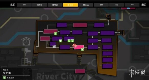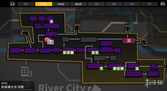 闹市区,在打完第一个boss阿健后,如图位置的区域开放,凯彼德大河 河堤,进去后遇到五代,五代要求在各个区域拍一个自拍,自拍不是自己手动拍照,而是特定地点互动。