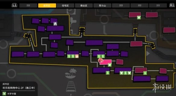 闹市区如图位置欢乐街购物中心 2F,两条路线,要么走上方的路,靠近下方的边缘然后跳到电梯上,要么走下方的路,逆时针绕一圈回去同样来到电梯上。