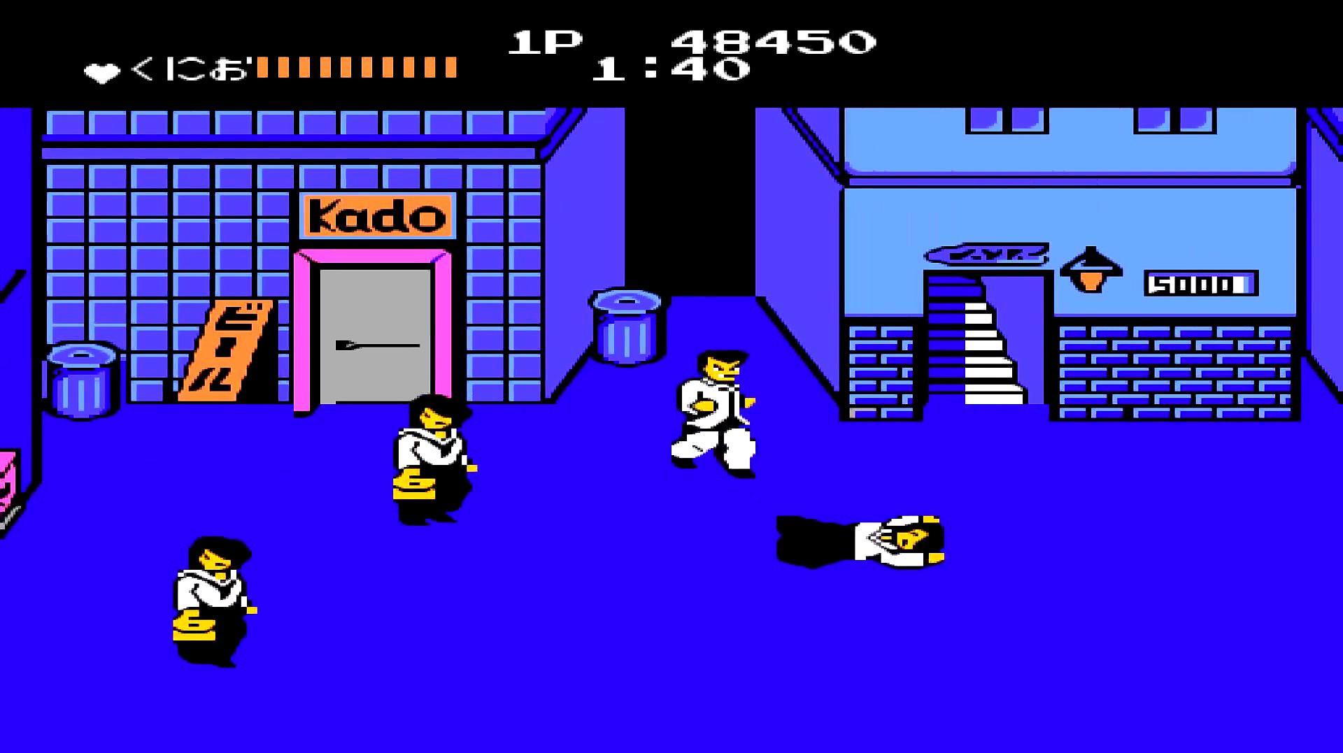《热血硬派》,这个从游戏画风上就能看出来,这一部作品相较其它的来说画风要粗糙很多,该作主要是讲热血高校学生广场被绑架,作为他的好友的国夫经过一路奋战,最终将其救出来的故事。