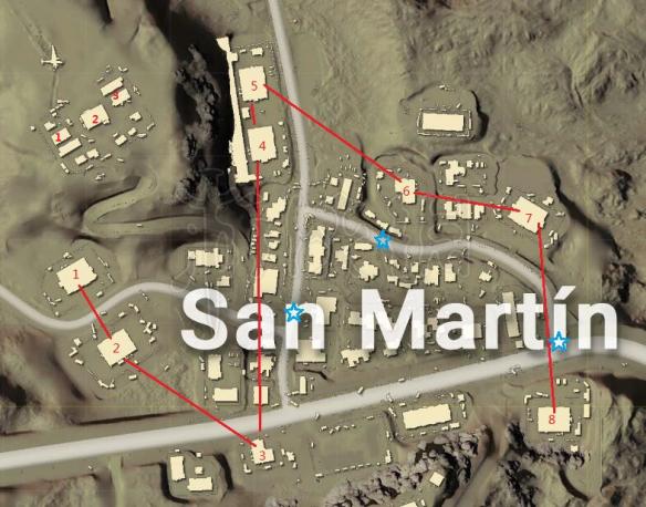 沙漠地图各城市的肥点我已经用1234标记(其余的建筑不太推荐),五角星是车辆位置,四排若分头搜索目测可以肥到爆!没有列出来的城市要么是无脑搜都很肥,要么都是穷得要死的。