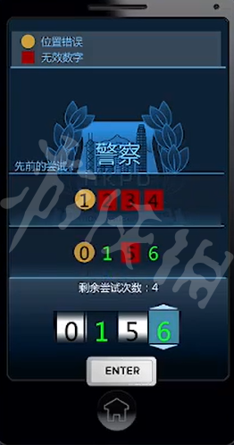 然后把1换到2号位,其他三个尝试剩下的数字,0156,这时可以发现1和6是对的,5是错误的,而0只是位置错了数是对的。