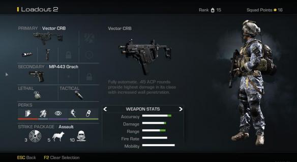 Vector冲锋枪:一把非常适合中距离作战的冲锋枪,果断四配件中近距离神器。这把冲锋枪能装4个配件,枪口,弹匣,握把(只限垂直握把)和瞄具,没有枪托,使用45子弹,装弹13发,加扩容25发。