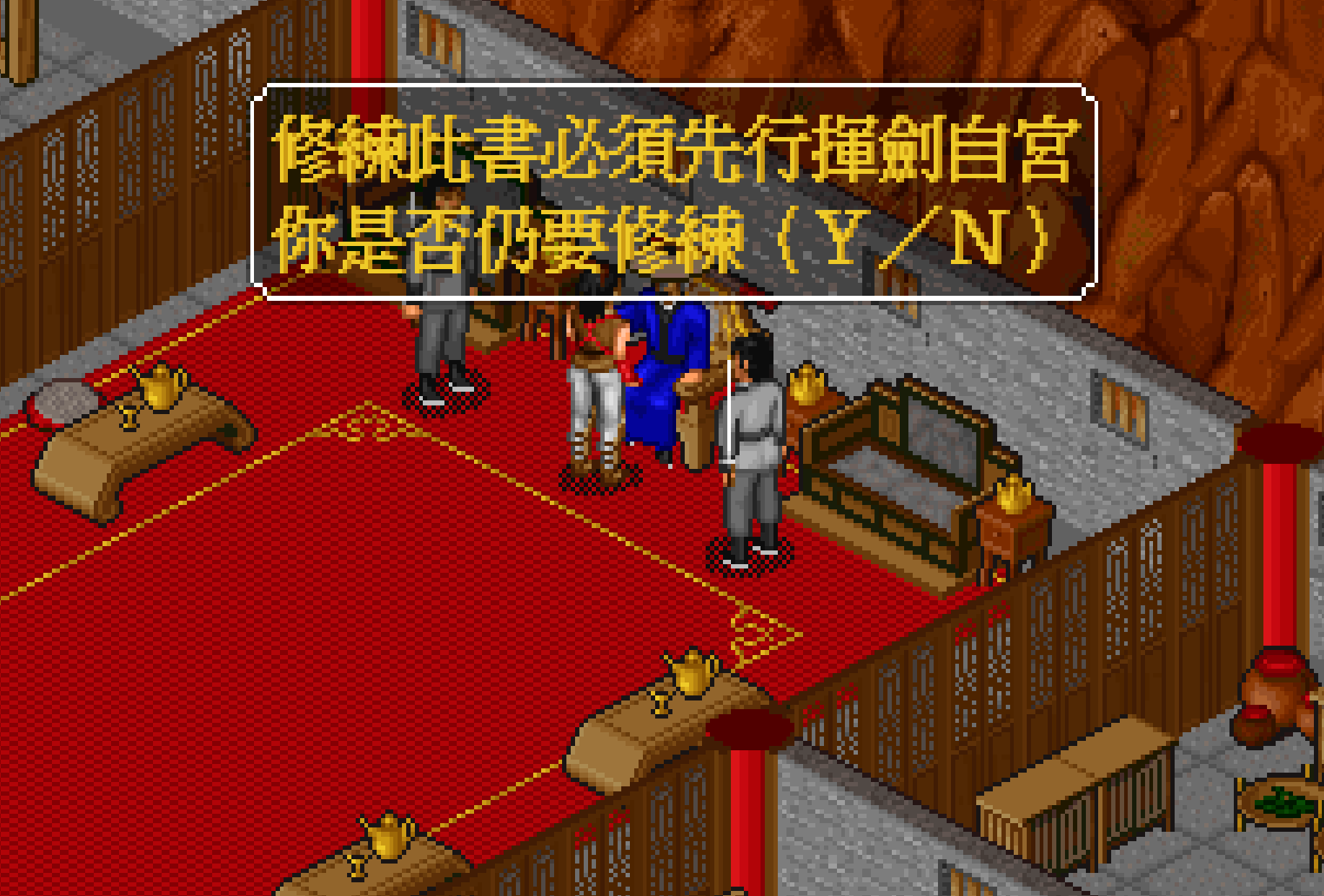辟邪剑法在学习的时候会提示是否自宫。当然了,就算真的自宫了也不会有任何影响的,反正游戏中不会涉及到任何男女情爱之事,而且后期游戏中也不会有任何注明。