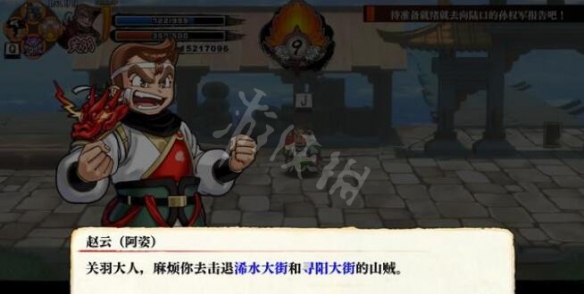 在鄂的左侧找到赵云,对话后前往两地击败当地盗贼后返回,奖励10点名声。