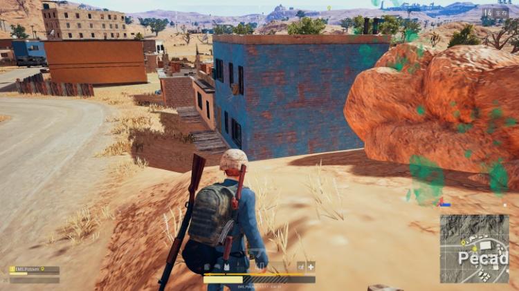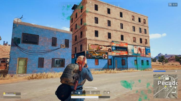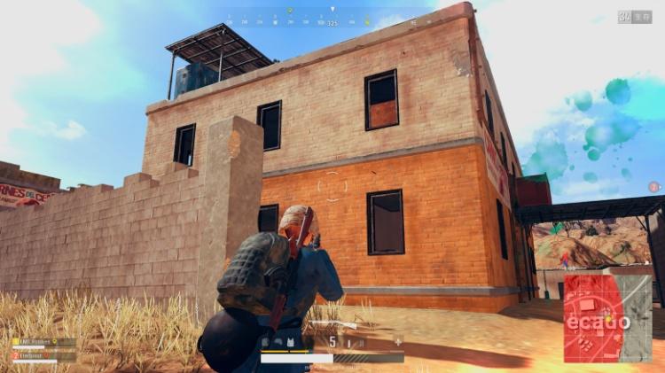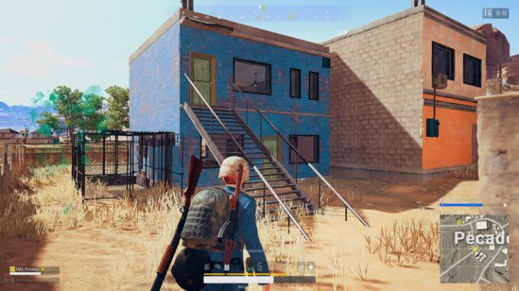 蓝色高楼:是沙漠地图中最好守的楼之一,上楼通道只有楼梯,并且四面都有视野,楼顶可以上去并且趴下后没人能打到。