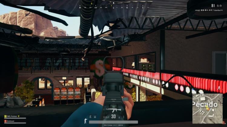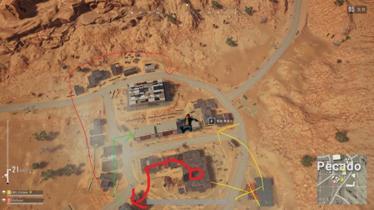 这种情况下需要注意汽车旅馆和加油站是否落人了(但据孤雨统计,十把里有八把汽车旅馆都不会落人,因为汽车旅馆到赌场的路上空旷掩体少,汽车旅馆资源少,很少有人把汽车旅馆作为一队的落脚点),如果汽车旅馆落人而且赌场左边一排小房子也有敌人,建议先占领赌场三楼和二楼,清理掉一边的敌人再选择行进路线。