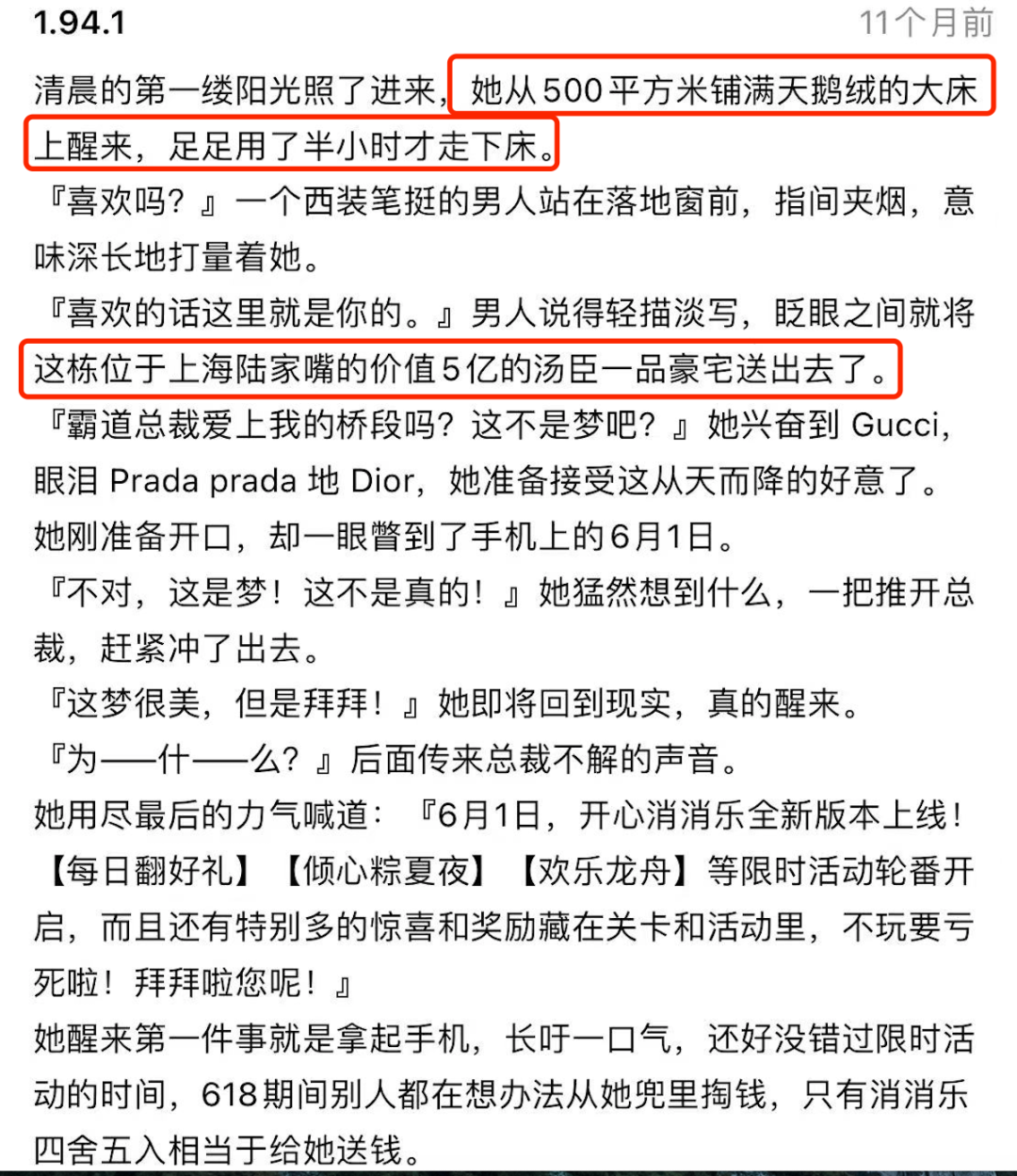 “从500平米铺满天鹅绒的巨炕上醒来,