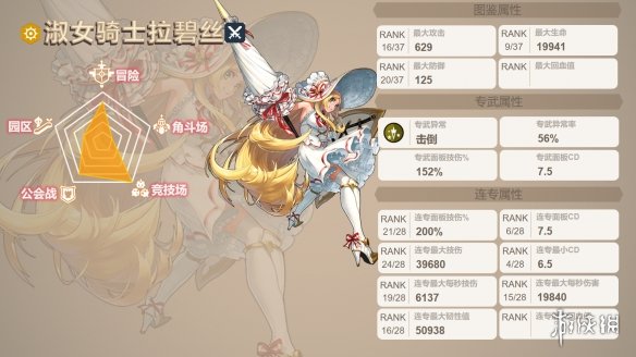 专武异常率极高(2发进连锁)且CD极短,组队属伤,异常击倒可增幅自身组合技伤害50%达到5.4倍(仅次于土弓6倍)是极优秀的光属公会队主控,但后期游戏主推光属性远攻队伍,光天以及机娘都是远程光属性公会战要角,因此沦为插件的宿命。