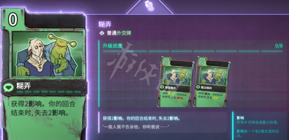 增强糊弄,效果改为获得3影响,回合结束失去3影响。