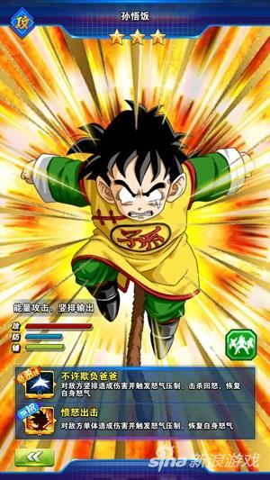 孙悟饭的攻击够高,能量输出一把手,主打竖排输出,同时还可以击杀回怒,抑制对方的怒气恢复自身的怒气哦。